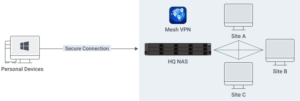 Crie uma conexão VPN segura usando o serviço QVPN . Organizações com vários locais podem aproveitar o QuWAN SD-WAN para configurar rapidamente uma VPN Mesh para funcionários remotos e filiais.