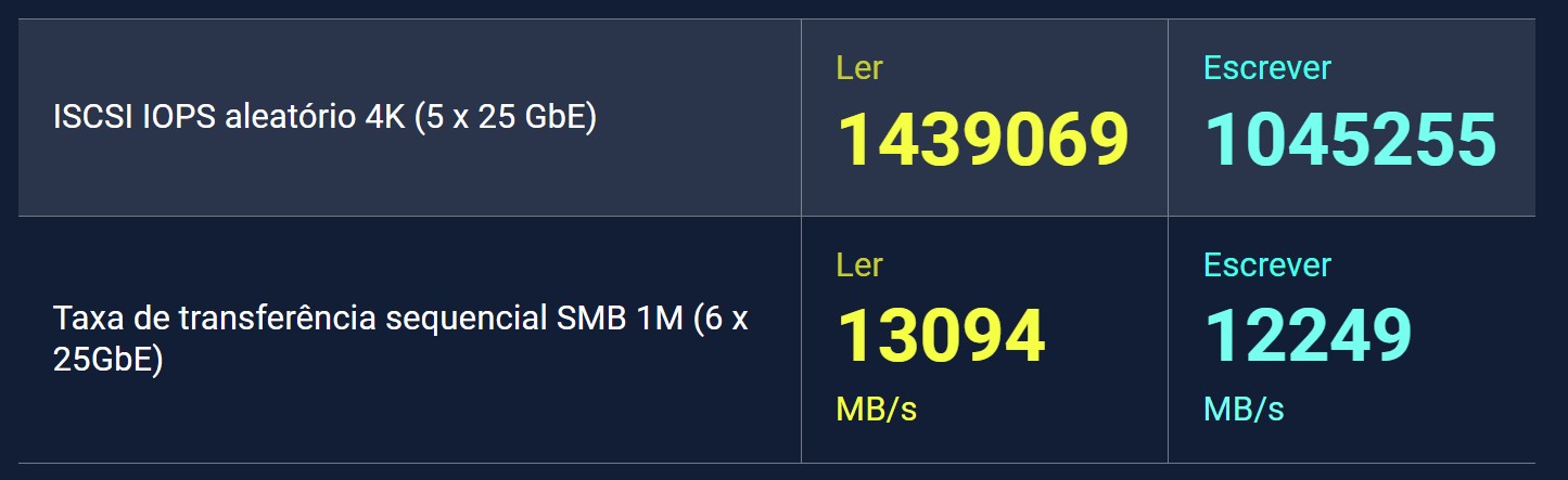 Testado no QNAP Labs. Os valores podem variar de acordo com o ambiente.